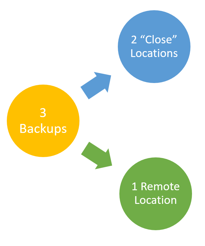 You can think of availability with the principle of 3-2-1. This assumes that when a backup is created, you are making 3 copies of the data, securing it in 2 locations that are convenient for restoration, and 1 that is secured at a cold site where access is typically out off band.