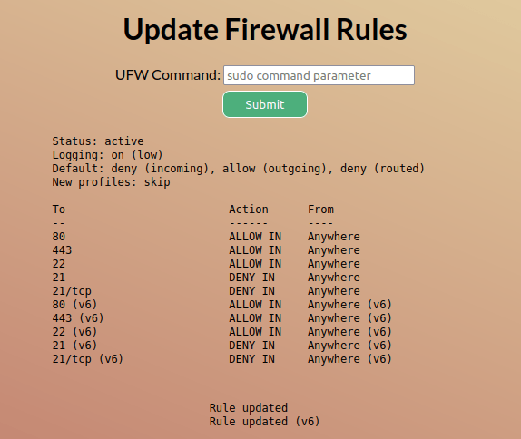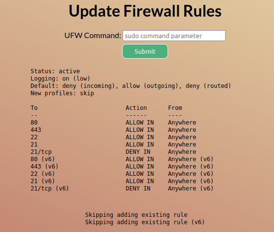 I tried doing sudo ufw status to see what I get back. Not much Just Invalid Command.