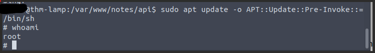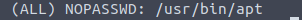 from here I run sudo -l and immediately get a result that I can use /usr/bin/apt