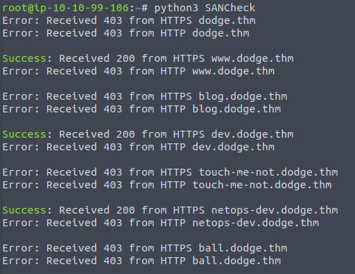 I decided I wanted to check all of the SAN’s, but I didn’t want to do this manually, and I wanted to write something in python.