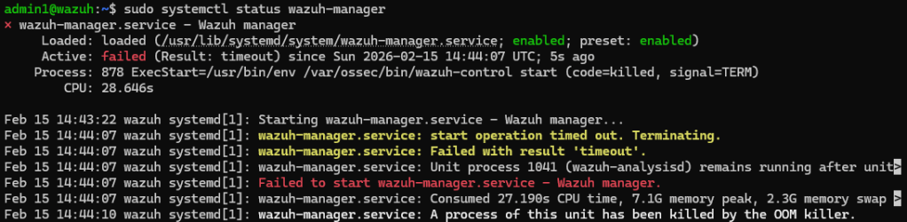 sudo systemctl restart wazuh-managersudo systemctl status wazuh-manager